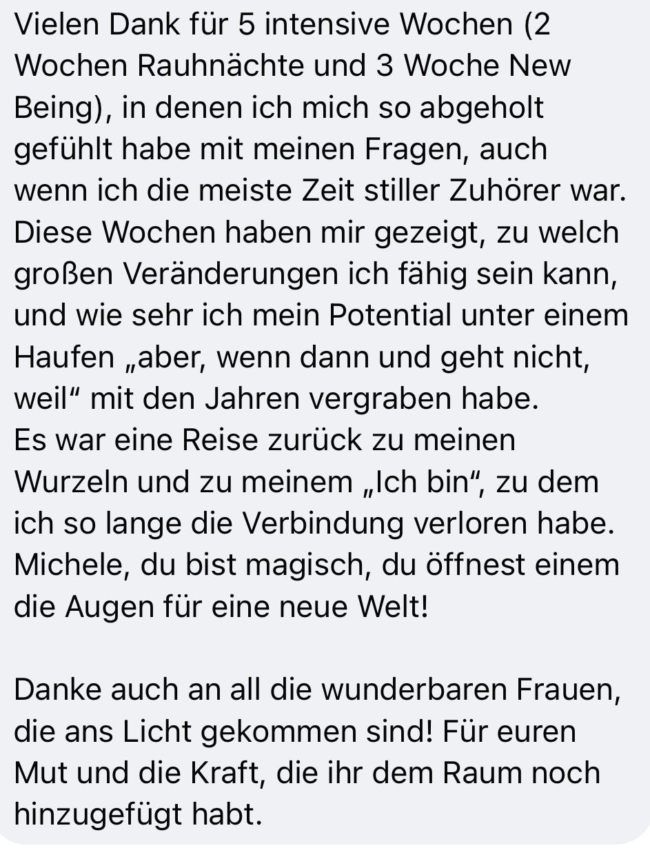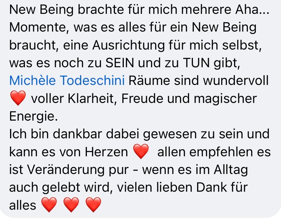 New Being ist kein gewöhnlicher Workshop, der dir einfach nur Wissen vermittelt. Es ist eine tiefgreifende Erfahrung, die Transformation auf allen Ebenen ermöglicht. Hier geht es nicht um kleine Schritte oder oberflächliche Veränderungen – es geht um deinen Durchbruch, um die Rückkehr zu deinem wahren, kraftvollen Ich.